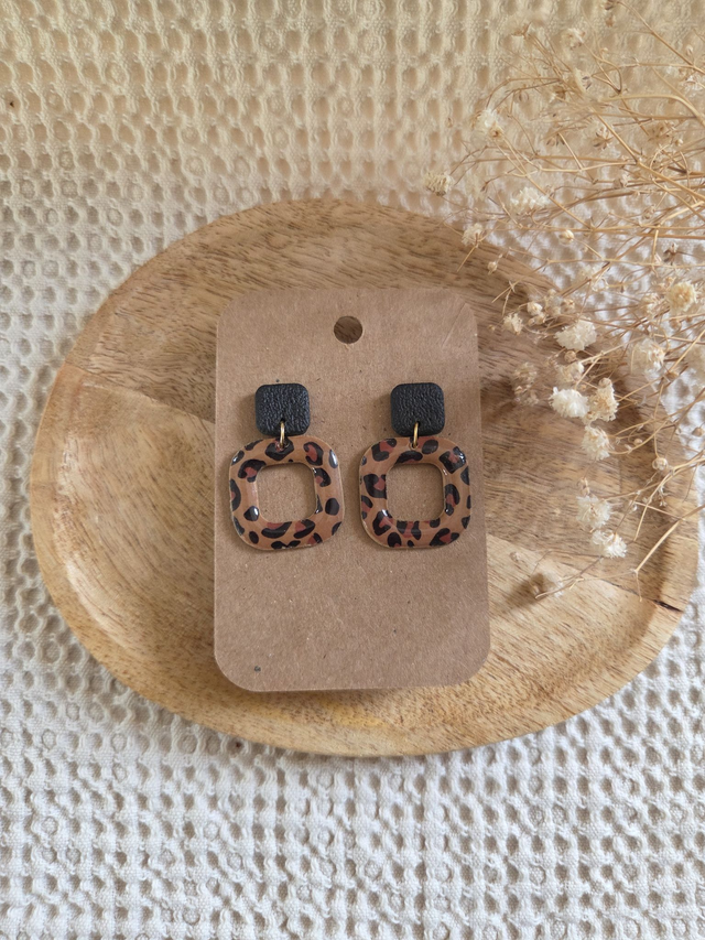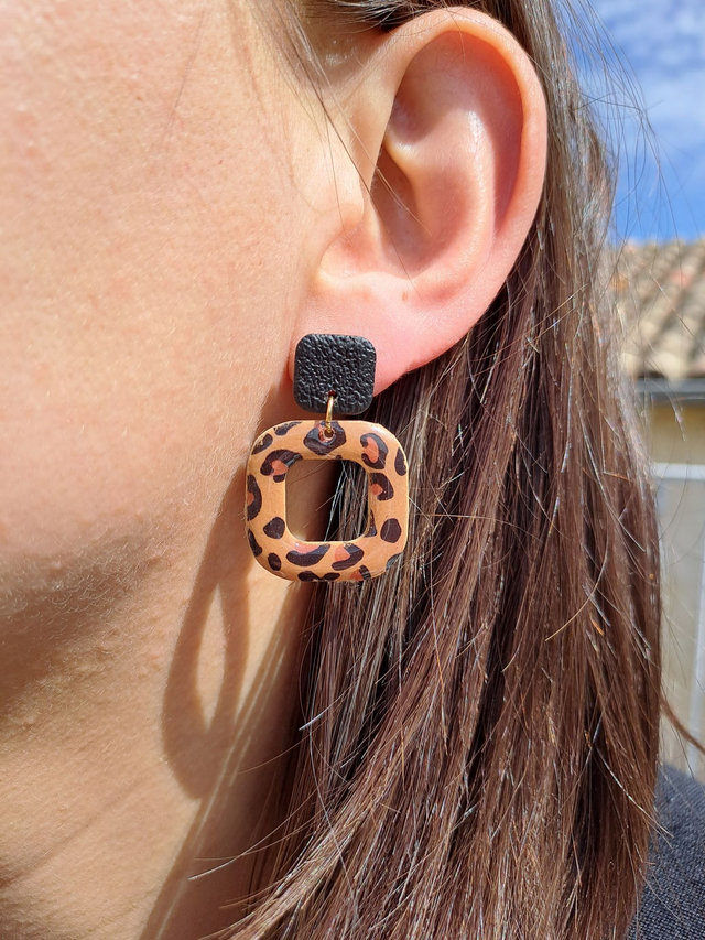 Boucles d'oreilles faites à la main en argile polymère et résine.