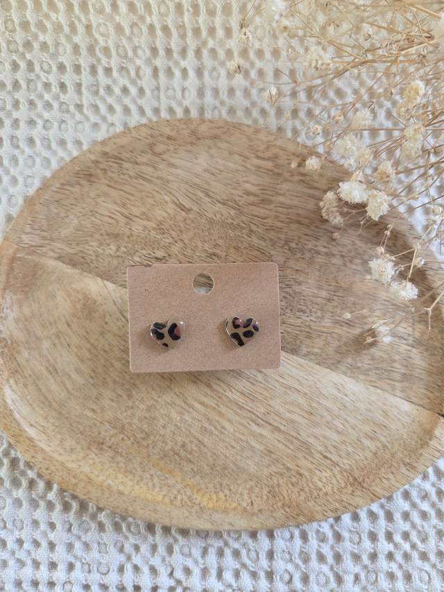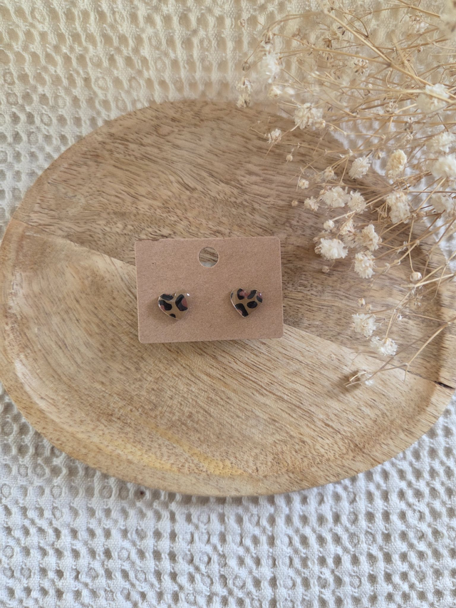 Boucles d'oreilles puces petits cœurs Léopard beige