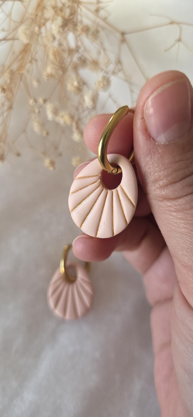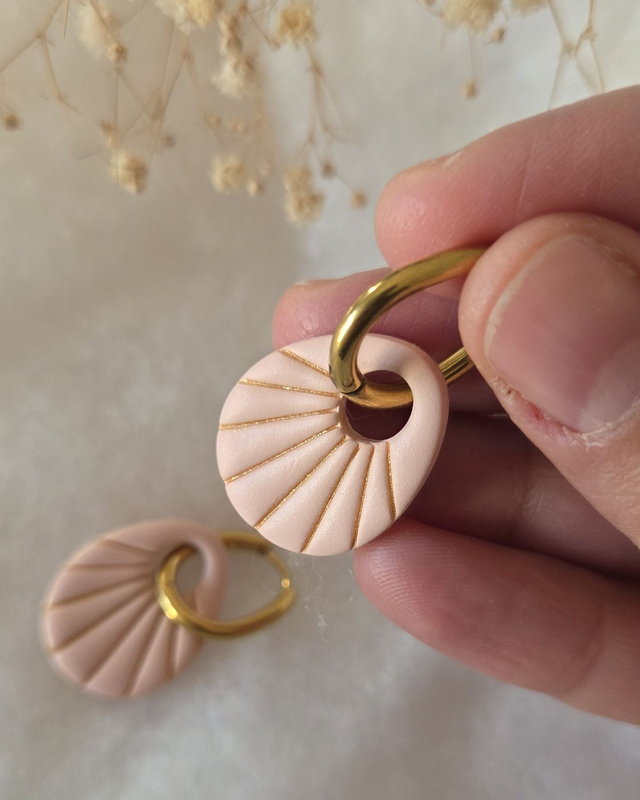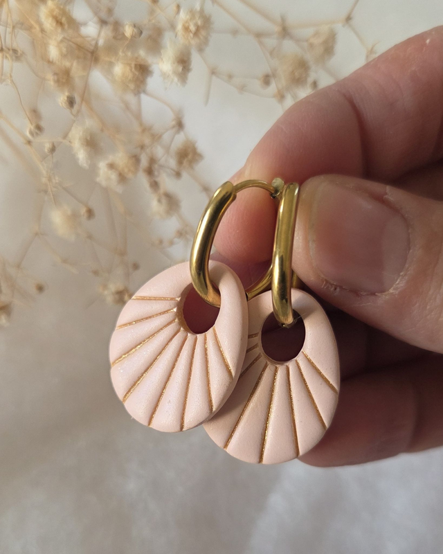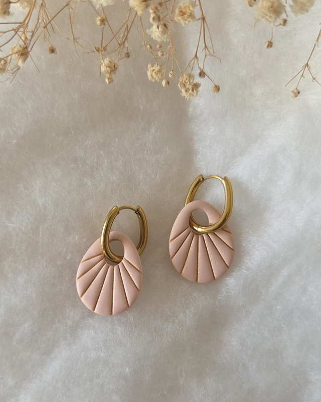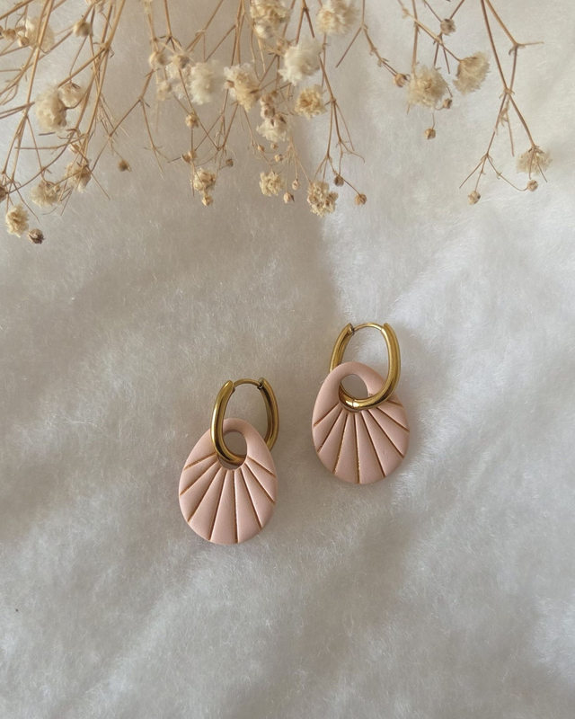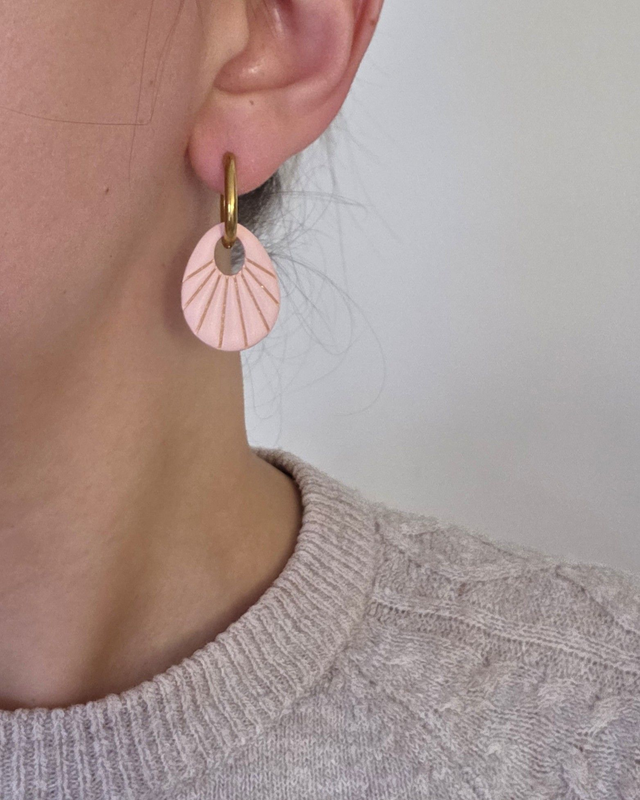 ✨ Issues de la collection Eclats de Noël et inspirées de l'univers du film The Holiday, les boucles d'oreilles KATE se composent d'une créole dorée ovale en acier inoxydable et d'une pampille en argile polymère.