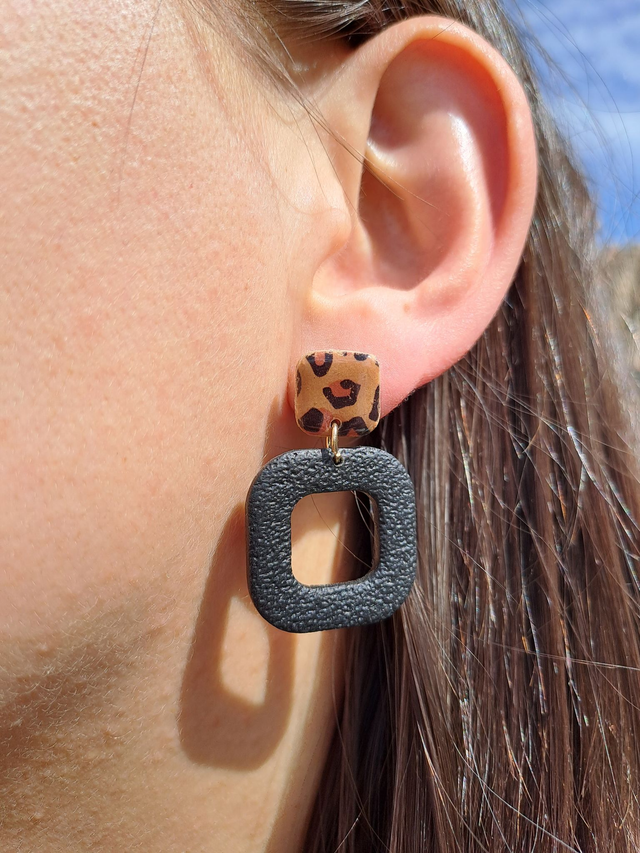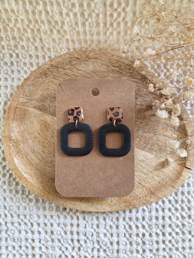 Boucles d'oreilles faites à la main en argile polymère et résine.